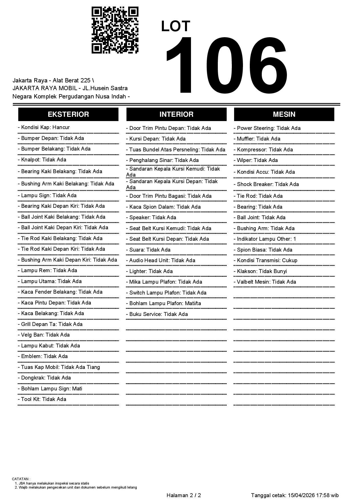 - CatatanFOTO NOSIN TA // WAJIB CEK UNIT & DOKUMEN SECARA LANGSUNG // JBA TIDAK MEMILIKI OPERATOR UNTUK MELAKUKAN INSPEKSI, PESERTA LELANG WAJIB CEK UNIT, DOKUMEN DAN TTD SURAT PERNYATAAN DI JBA